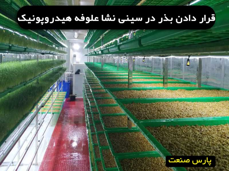 قرار دادن بذر در سینی نشا علوفه هیدروپونیک: